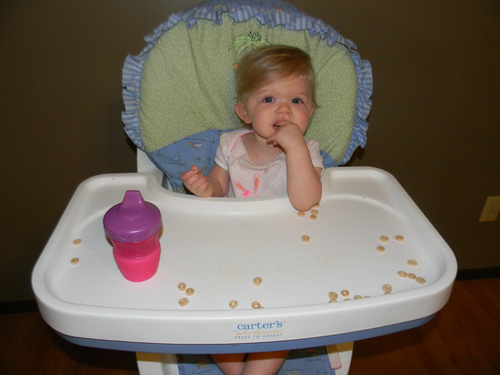 Anna turned 1 yr. old on June 3rd. She is a sweet little girl, but has also shown us her independent spirit already:) She is following in her sisters' footsteps in that area. She lets us know what she wants by screaming. We are working with her to sign please instead of screaming. Here are some pictures taken throughout the day on her birthday.